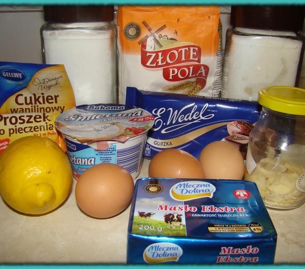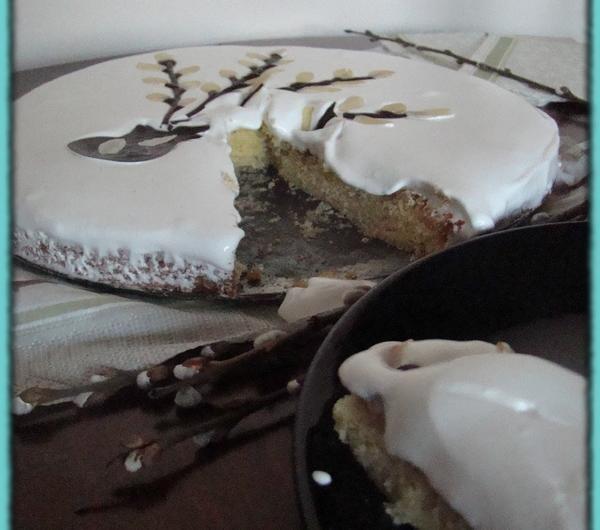 Czas przygotowania: 40 minilość porcji: 12 kawałkówSkładniki:Ciasto:350g mąki (około 2 szklanek)200g masła125g cukru2 żółtkaopakowanie cukru waniliowegołyżeczka proszku do pieczeniałyżka spirytusu lub octu (np. jabłkowego/ roślinnego)2 łyżki śmietany 18%Polewa cytrynowa:3 białka1,5 szklanki cukru pudru( można więcej lub mniej w zależności jak słodka ma być polewa)sok z połowy cytrynyDekoracja:czekolada (gorzka lub mleczna)Bakalie (np. orzechy, migdały, itp.)Mąkę łączymy z proszkiem do pieczenia. W osobnym pojemniku masło mieszamy przy pomocy miksera z żółtkami, cukrem i cukrem waniliowym, a także śmietaną. Pod koniec ucierania dodajemy łyżkę spirytusu. Łączymy mąke z powstałą masą i wyrabiamy ciasto. Można ręcznie lub za pomocą miksera, ciasto powinno wyjść odrobine lepkie. Wkładamy je do lodówki na ok 5-10 min. W tym czasie blachę smarujemy masłem i posypujemy bułką tartą (by ciasto nie przykleiło się do blachy). Nakładamy ciasto do formy i wkładamy dowcześniej nagrzanego piekarnika (180 stopni) na ok 20 min. Ciasto jest gotowe gdy nabierze pieknego złotego koloru. Następnie przygotowujemy polewę: białka ucieramy mikserem z cukrem pudrem i ubijamy na gęstą lśniącą masę, pod koniec ucierania dodajemy soku z cytryny. Polewę nakładamy na ostudzone wcześniej ciasto. Jeśli chodzi o dekoracje, my naszą otrzymałyśmy dzięki roztopionej czekoladzie w kąpieli wodnej i płatkom migdałowym, lecz każdy może spróbować zrealizować własny pomysł i wykorzystać bakalie, które lubi najbardziej.