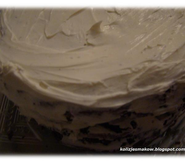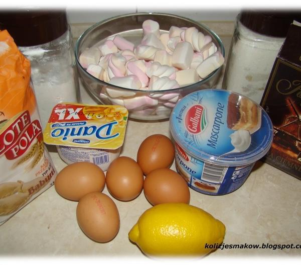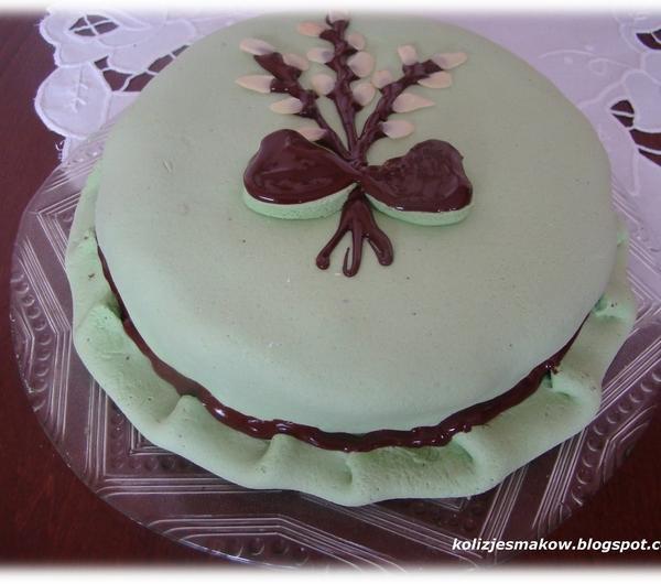 Czas przygotowania: 1,5hIlość porcji: 10Skłaniki:Biszkopt:5 jajek3/4 szklanki cukru2/3 szklanki mąki pszennej1/3szklanki kakaoMasa marshmallow:300g pianki750g cukru pudru3 łyżki wodyMasa serowa:400g serka mascarpone150g serka waniliowegosok z 1/2 cytryny ( jak ktoś nie przepada za cytryną można ją pominąć, masa nadal będzie pyszna)Pracę nad tortem zaczynamy od upieczenia biszkoptu, są na to dwa sposoby: możemy użyć jednej tortownicy, upiec cały biszkopt i potem przeciąć go na 3 plastry. Druga opcja to pieczenie każdego spodu osobno ( my skorzystałyśmy z drugiego sposobu, tylko dlatego że jesteśmy w posiadaniu 3 małych spodów). Robienie biszkoptu zaczynamy od połączenia mąki z kakao. Następnie bierzemy jajka, oddzielamy żółtka od białek. Białka ubijamy na sztywną piane i powoli dodajemy cukier. Nadal ubijając powoli dodając żółtka. W momencie, gdy już będziemy posiadać piękną puszystą pianę, dodajemy naszą wymieszaną mąke z kakao. Można wymieszać te składniki mikserem na wolnych obrotach, ale wtedy stracimy puszystość naszej masy, dlatego my wolimy mieszać składniki łyżką, dodając powoli mąkę. Dzięki temu nasza masa nadal będzie puszysta, a ciasto pieknie wyrośnie. Tak przygpotowaną masę przelewamy do tortownicy ( lub kilku spodów) wyłożonej papierem do pieczenia. Ciasto wkładamy do nagrzanego piekarnika na 180 stopni i pieczemy 30 - 35 min, do tzw. suchego patyczka.Masa serowa do smarowania naszych spodów powstaje poprzez wymieszanie (najlepiej łyżką) dwóch rodzajów serka i na koniec dadaniu soku z cytryny(jesli ktoś nie przepada za smakiem cytryny można ją pominąć).Teraz czas na najbardziej pracochłonną część naszego tortu, a mianowicie tworzenie masy cukrowe j. Pianki marshmallow rozpuszczamy w kąpieli wodnej, czyli nad garnkiem gotującej się wody ustawiamy miskę z piankami, i dodajemy 3 łyżki wody. Pianki rozpuszczą się szybciej, gdy będziemy je mieszać. Jeśli chcemy uzyskać inny kolor masy dodajemy barwnik spożywczy. My dodałyśmy barwnik w kolorze zielonym. Do rozpuszczonej masy którą nadal trzymamy nad kąpielą wodną, dodajemy stopniowo cukru pudru. Rozpuszczone pianki zaczną przypominać spójną masę. Przekładamy ją na blat, podsypując cukrem pudrem i wyrabiamy ciasto. Na końcu powinno przypominać konsystencją plastelinę (ciasto nadal może się lekko kleić).Teraz gdy mamy przygotowane wszystkie składniki robimy tort . Wystudzony biszkopt (musi być w temperaturze pokojowej), dzielimy na 3 lub 4 części i przekładamy naszą masą serową. Jeśli ktoś lubi wilgotny biszkopt to może go nasączyć np. wodą z cytryną, herbatą, kawą. My nie nasączyłyśmy niczym, a ciasto i tak wyszło pyszne. Masę serową nakładamy także na samą górę, poniewać ciasto z pianek lepiej będzie układało się na masie serowej. Następnie bierzemy nasze piankowe ciasto i rozwałkowujemy na stolnicy (by ciasto nie przywierało obsypujemy stolnice mąką ziemniaczaną). Gdy ciasto będzie odpowiednio cienkie przekładamy na przygotowane wcześniej spody i pozwalamy ponieść się naszej wyobraźni. Można przyciąć dokładnie na kształt spodów, można zrobić falbankę jak my lub wymyślić zupełnie coś innego. Jak pisałyśmy wcześniej masa jest bardzo plastyczna i można się z nią fajnie bawić. Oczywiście ze względu na zbliżające się Święta Wielkanocne nie mogłyśmy się powstrzymać i zrobiłyśmy mały obrazek z bazi na górnej części tortu. Użyłyśmy do tego roztopionej czekolady w kąpieli wodnej i płatków migdałowych. Jak zrobicie coś fajnego, pochwalcie się swoimi dziełami na facebooku lub blogu i piejcie z dumy jak my, że stworzyliście takie cudo!!