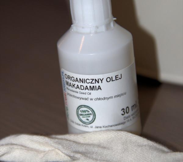 Jak obiecuje producent - ma to być krem, który szybko się wchłania, zapewnia 24-godzinne nawilżenie, ma zregenerować i odżywić skórę dzięki ekstraktowi z masła shea oraz dzięki obecności lizatu bakterii probiotycznych ma wzmocnić naturalną barierę ochronną skóry i chronić ją przed działaniem szkodliwych czynników zewnętrznych. Pomyślałam sobie - coś może w końcu dla mnie, a raczej dla moich przesuszonych i pękających dłoni. Tajemniczy, dla niektórych bardziej lub mniej "Bifidus" jak to producent napisał na opakowaniu, to w sumie w moim odczuciu nie wiadomo co - producent nie precyzuje dokładnie z czego i jakich bakterii jest to lizat, co mnie, jako mikrobiologa, jakoś jednak trochę obruszyło, no ale niech będzie, że przewrażliwiona jestem i się czepiam ;)Składu nie ma złego, kilka olei, masło shea (jego zalet nie muszę wymieniać, bo na pewno obiło Wam się wiele dobrego o uszy na jego temat) nie jest wymienione na końcu, więc generalnie nie jest źle. Plusem dla mnie jest brak mocznika w składzie, gdyż jest dla mnie alergenem i tylko pogarsza stan moich dłoni, dlatego na wstępie krem dostał za to wielkiego plusa.Moje wrażenia po samym kremie - bardzo szybko się wchłania, nie zostawia lepkiej warstwy, skóra jest wygładzona i nawilżona. Jednak musiałam się smarować bardzo często, gdyż efekt nie był trwały, czyli doszłam do wniosku, że muszę ten krem podkręcić, żeby był lepszy. Skoro olej z orzechów makadamia sprawuje się dobrze na włosach, a miałam go w lodówce, to postanowiłam spróbować i nie żałuję, wręcz przeciwnie :)Organiczny Olej Makadamia ( zrobsobiekrem.pl).