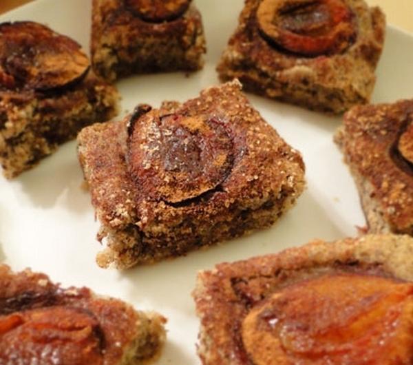 Wegańskiego pieczenia ciąg dalszy. Tym razem również z wykorzystaniem mąki gryczanej. Podobno nie nadaje się ona do słodkich wypieków, ale ja postanowiłam się o tym przekonać osobiście. I okazało się, że nie jest to prawdą :) Placek wyszedł bardzo pyszny. Od razu zniknęła ponad połowa. I nawet moja siostra, oporna na zdrowe rzeczy ;) też zjadła. Przynajmniej 2 kawałki! Taki to sukces :)Placek ten robiłam już po raz drugi - w pierwszej wersji jako "łącznik" posłużył mi banan (zmiażdżony) i 3 łyżeczki namoczonego siemienia lnianego. Za drugim razem (który prezentuję dziś) ciasto zrobiłam na mleku sojowym. Wersja z bananem była nieco bardziej mokra. Obie jednakowo smaczne :) Najlepsze jednak w dniu pieczenia (szczególnie wersja bez banana).Składniki (blacha formatu 23x33cm):1 3/4 szkl mąki jęczmiennej razowej (może być pszenna lub orkiszowa)1 szkl mąki gryczanej1/4 szkl mąki amarantusowej (niekoniecznie, można dodać jęczmiennej/orkiszowej/pszennej zamiast)3 łyżki nierafinowanego cukru (użyłam trzcinowego) + 1 łyżeczka1 łyżeczka proszku do pieczenia (użyłam bez fosforanów)100ml oleju z pestek winogron400ml mleka sojowego1 łyżka soku z cytrynyszczypta soliok. 250-300g śliwek węgierek, wypestkowanych1 łyżeczka cynamonuDo mleka sojowego dodałam łyżeczkę cytryny. Odstawiłam na chwilę. Wszystkie rodzaje mąki wymieszałam w misce, następnie dodałam szczyptę soli, cukier oraz proszek do pieczenia. Wymieszałam płynne składniki, po czym przelałam je do suchych i dobrze wymieszałam.Ciasto przelałam do wysmarowanej formy, na wierzchu ułożyłam połówki śliwek, które posypałam mieszaniną cukru i cynamonu (użyłam po 1 łyżeczce).Piekłam 25 minut w temp. 180 stopni.