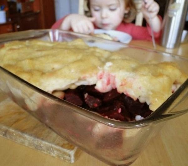 Jakiś czas temu pokazywałam na blogu zapiekankę z buraków i ziemniaków . Tym razem postanowiłam ziemniaki zamienić na białą fasolę i przykryć je chrzanowym sosem beszamelowym (z mleka roślinnego). Mój sos powstał na bazie masła sklarowanego, ale wystarczy zamienić je na oliwę (lub wybrany olej) by powstała wersja stricte wegańska. Dzieciom nie odpowiadała chrzanowa kołderka (może trochę za ostra?), musiałam im więc ją ściągnąć. Według mnie (i Męża) bardzo smaczne danie.Składniki:ok. 1kg buraków, wyszorowanych40dag fasoli (użyłam dużej, białej), namoczonej przez noc2 szkl mleka roślinnego (użyłam owsianego)2 łyżki masła sklarowanego /oliwy2 łyżki skrobi kukurydzianej2 łyżki startego chrzanusól morska, pieprz ziołowyBuraki upiekłam w piekarniku. Po ostudzeniu obrałam i pokroiłam w kostkę, włożyłam do nasmarowanego sklarowanym masłem naczynia żaroodpornego.Fasolę ugotowałam (używam do tego celu szybkowaru, więc trwa to na prawdę krótko). Odcedziłam i przełożyłam na buraki.W garnuszku stopiłam masło sklarowane, dodałam skrobię, chwilę smażyłam po czym zalałam mlekiem owsianym. Po zgęstnieniu dodałam chrzan, doprawiłam solą i pieprzem. Tak przygotowanym sosem przykryłam fasolę.Naczynie wstawiłam do nagrzanego do 180 stopni piekarnika i zapiekałam ok. 25-30 minut.