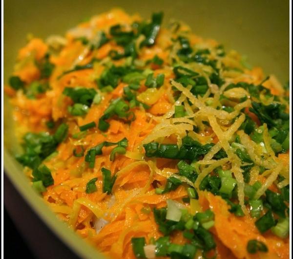 Marchewkę zetrzeć na tarce, na grubych oczkach,