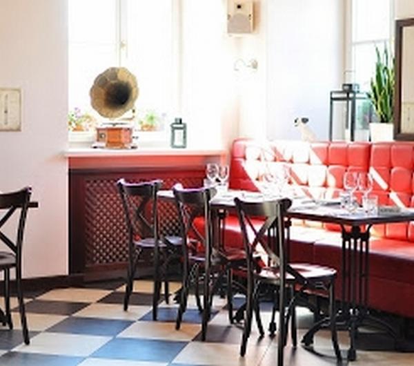 stole, w drugim wrażeniu staje się swojskim, przytulnym lokalem. Niewielkie stoliki i odbijające się w lustrach