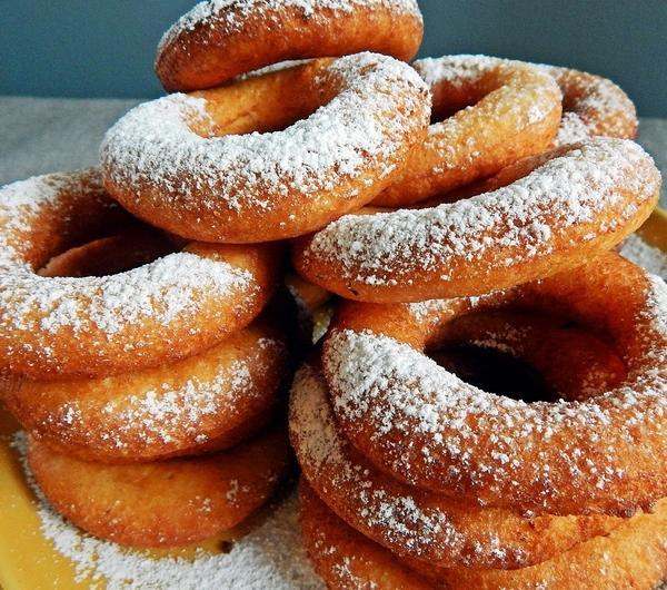 mąką. Wykrawamy z ciasta kółka za pomocą np. szklanki. Następnie w kółkach wykrawamy dziurki mniejszym kieliszkiem.Oponki zanurzamy w rozgrzanym