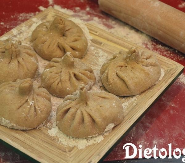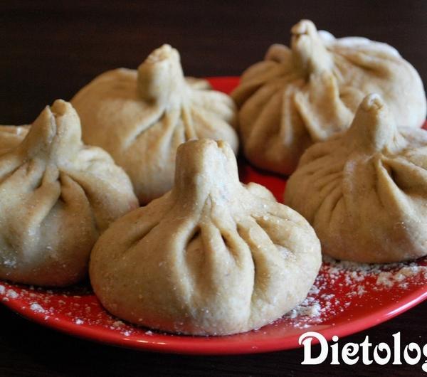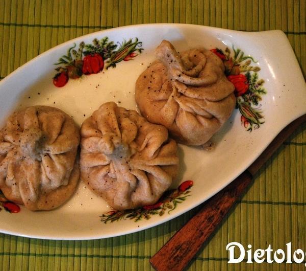 Główną gwiazdą warsztatów, oczywiście oprócz niekwestionowanej królowej polskich restauracji Magdy Gessler, była Liana Gamtsemlidze - szefowa kuchni i właścicielka wyżej rzeczonej gruzińskiej restauracji z Ursynowa. Bardzo przypadł mi do gustu jej sposób opowiadania o jedzeniu, a także jej naturalność, niewymuszona uprzejmość i niezwykła sympatyczność. Opowieściom o kuchni gruzińskiej, kuchennych rewolucjach, perypetiach restauracyjnych nie było końca, trudno było przestać także próbowania gruzińskich specjałów (obżarta wyszłam okrutnie). Dzięki temu spotkaniu skosztowałam kuleczek z siekanego szpinaku czy roladek z grillowanego bakłażana oraz papryki z pastą z orzechów włoskich i kolendry. Przewspaniałe przekąski. Pyszne winko.Jadąc w kierunku Masz Gulasz (pomijając to, że byłam wściekła na deszcz i korki) myślałam o słynnych gruzińskich pierożkach z mięskiem i rosołkiem w środku. Nie skrywałam zachwytu, gdy okazało się, że nauczymy się je robić. Pani Liana nie trzymała przepisu w sekrecie, podzieliła się z nami, co więcej, nauczyła je zawijać. Postanowiłam więc zrobić je w domu. Oczywiście jak mnie znacie, to pewnie się domyślacie, że nie trzymałam się kurczowo receptury i troszeczkę je przerobiłam po swojemu. Zamiast białej mąki użyłam pszennej razowej, a rosołek wlałam drobiowy.No to się pochwalę moim dziełem, może ktoś będzie chciał spróbować - niebo w gębie. Ostrzegam jednak, że pierożki są pracochłonne, ale warto się napracować dla takiego efektu.