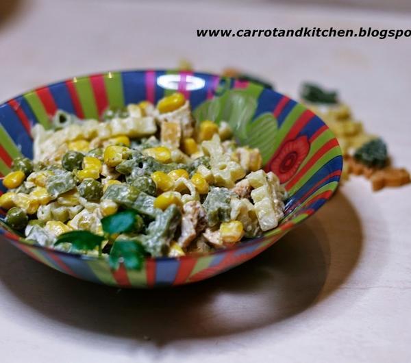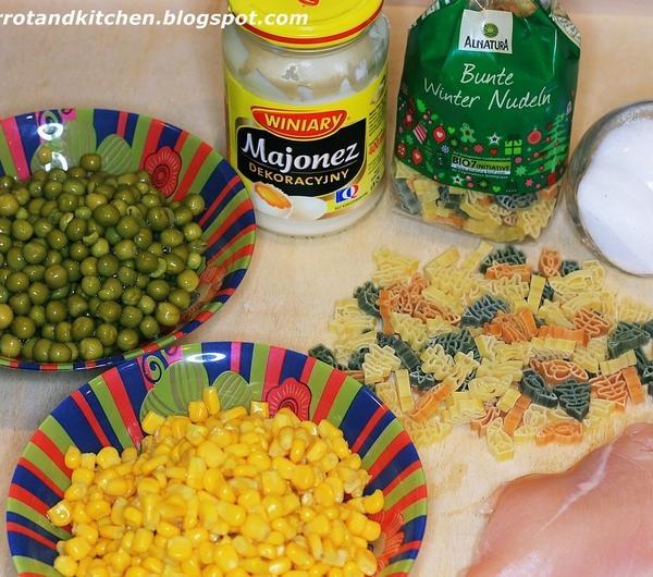 Witam WszystkichDzisiaj przygotujemy sałatkęmakaronową ze świątecznymi wzorkami,chociaż już po świętach to w moje ręce trafił makaron firmy Alnatura w kształtach świątecznych, o samym makaronie i recenzji tego produktu napiszę więcej w kolejnym poście.Do sałatki potrzebne Nam będą:makaron ze świątecznymi wzorkamipuszka groszkupuszka kukurydzypierś z kurczakamajonezsólDo marynaty:mieszanka suszonych przyprawzioła prowansalskiepapryka słodka sypkaoliwawodaMakaron gotujemy w osolonej wodzie przez około 10 minut, w tym czasie przygotowujemy marynatę do piersi z kurczaka, tłuczemy ją i maczamy w marynacie.Następnie smażymy na rozgrzanej patelni po 4 minuty na każdej stronie.Do miski dodajemy ugotowany makaron, pokrojoną pierś z kurczaka, groszek, kukurydzę i dwie łyżki majonezu po czym dokładnie mieszamy.