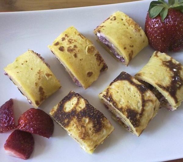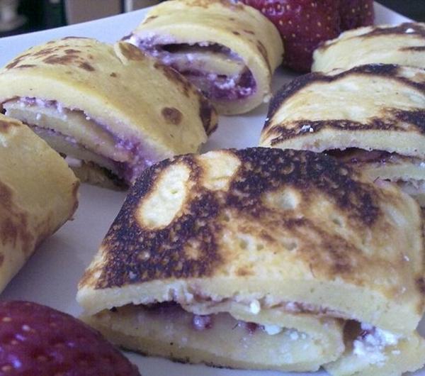oliwą smażę naleśniki, jakieś 2 minuty z każdej strony - aż uzyskam piękny złoty kolor.Z podanych proporcji wyszło mi 8 naleśników, dosyć grubych, ale elastycznych, żebym mogła je swobodnie zagiąć.Masa: w misce rozdrabniam