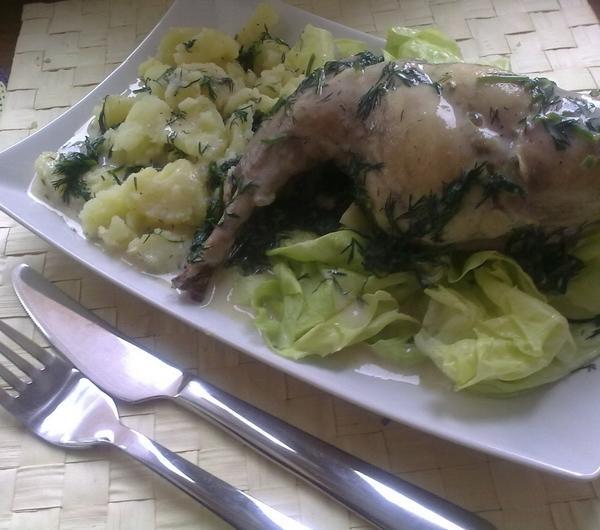 Królika nie smażyłam przed duszeniem, nie panierowałam, zależało mi na miękkim, duszonym