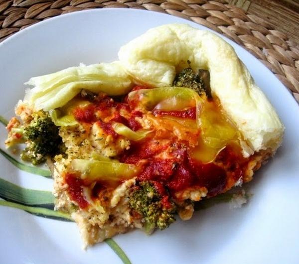 Tym razem ponownie typowy wytwór przypadku czyli zbieranina lodówkowych resztek, która zgrała się w całkiem smaczną zapiekankę godną obfotografowania i opublikowania tutaj. Oszczędność, czasu, pieniędzy i zasobów naturalnych.- pół drobno pokrojonego