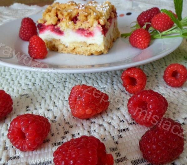 maliny, zetrzeć drugie ciasto, piec 190 ° 30-40 min. Po przestudzeniu posypać
