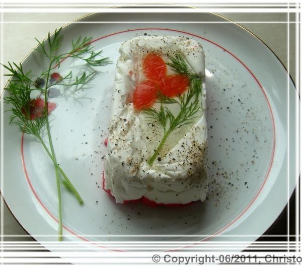 Pęczek szparagów200ml śmietany kremówki 36%1 łyżka dobrego chrzanu4 łyżeczki żelatynysól, pieprz2 łyżki keczupuSzparagi ugotować ,zahartować zimną wodą ,odcedzić.Ubić śmietanę dodać rozpuszczoną w małej ilości gorącej wody żelatynę.Do2/3części śmietany dodać chrzan, do pozostałej keczup.Na dno naczynia wlać biały mus i nałożyć szparagi.Zalać białym musem i następnie czerwonym.Wstawić do lodówki.