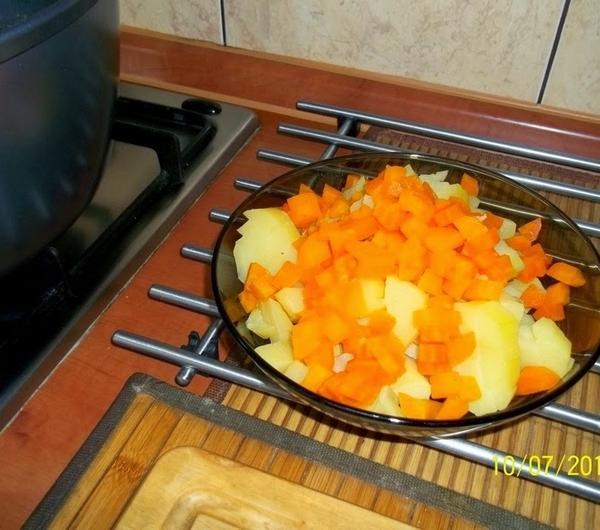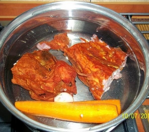 marchew a wędzonkę gotujemydo miękkości.