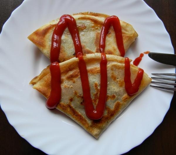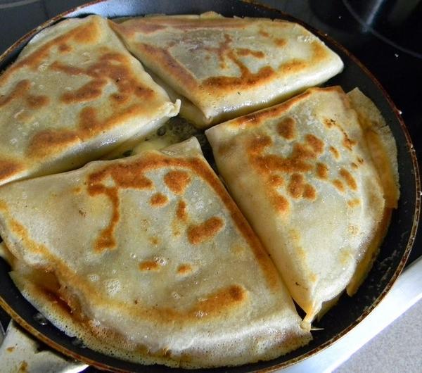 7. Naleśniki zawijamy w trójkąty i odkładamy na talerz (będziemy znów smażyć).
