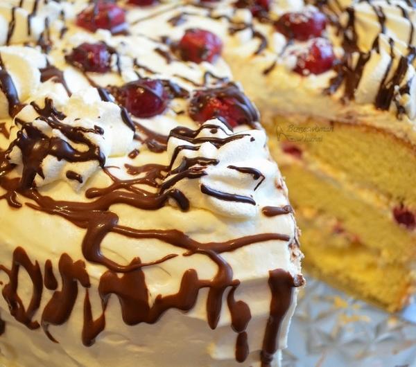 Prawdziwa bomba kaloryczna, ale za to jaka pyszna. Jeden kawałek i jesteśmy nasyceni. Tym razem tort nie jest przełożony samą