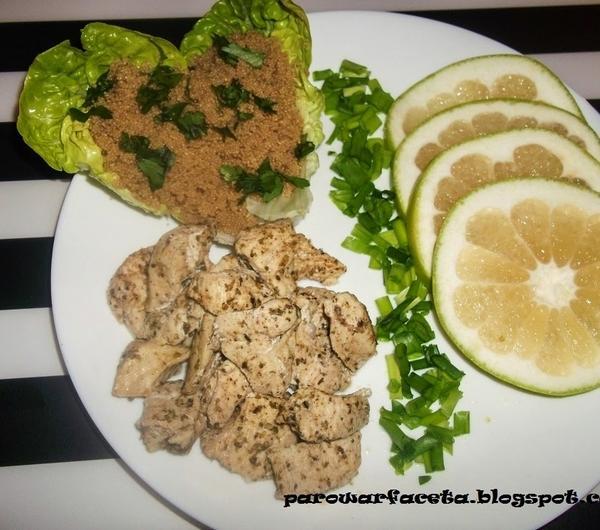 Składniki :4 łyżki ziarna amarantusa bio1 filet z piersi kurczakanatka pietruszkiszczypiorek3 łyżki oliwy z oliwek z oreganoPrzyprawy :pieprz ziołowykmin rzymskimajeranekczosnek granulowany