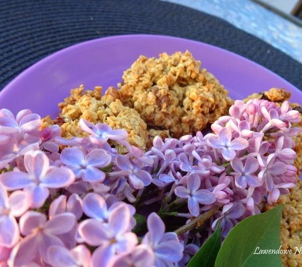 płatki owsiane i mieszamy. Naszą mieszankę studzimy. Dodajemy pozostałe składniki i mieszamy.Łyżką układamy