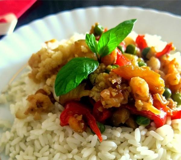 Składniki:ryż 2 torebkikukurydza 1 puszkagroszek zielony, 1 puszkapapryka czerwona i żółta po 1kiełbasa 0,5 kgolej 4 łyżkisól, pieprz, czosnek, bazylia, papryka, sos sojowyWykonanie:Rozgrzać olej na wysokiej patelni, wrzucić ryż, zezłocić.W tym czasie pokroić paprykę w słupki i kiełbasę w półplastry.Dodać do ryżu paprykę, kukurydzę, groszek, kiełbasę, przyprawić do smaku. Dusić ok. 30 min. W razie potrzeby podlać wodą lub bulionem. Podawać gorące.