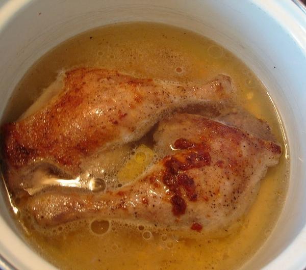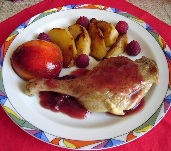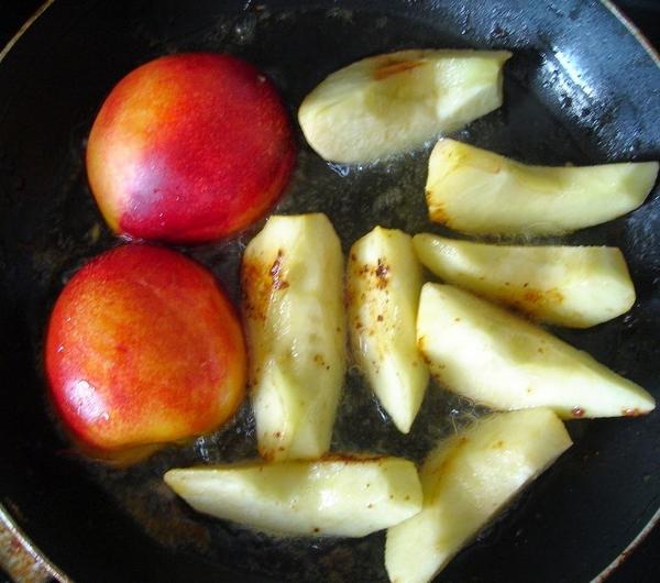 Najlepszym dodatkiem do kaczych nóżek są owoce podsmażane na maśle (delikatnie oprószone solą). Ja użyłam jabłek i nektarynek.
