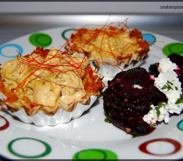 mięso z kurczaka. Dusimy razem 5 minut. Upieczone tartaletki napełniamy ciepłym sosem. Podajemy z