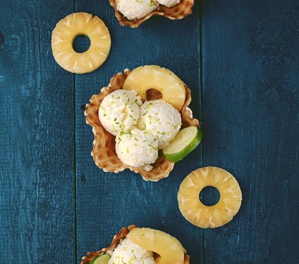 Zastanawiacie się jakie gałkowe lody są najlepsze? No to chyba mam dla Was odpowiedź. Lody o smaku słynnego alkoholowego koktajlu są wyborne. Mają świetną, kremową konsystencję. Delikatnie łączy się w nich smak kokosa, ananasa i limonki, a całości dodaje perfekcji wyraźny akcent alkoholowy.składniki:600 ml kremówki 36 %125 ml soku z ananasa (z puszki)4 łyżki mleka kokosowego30 g wiórek kokosowych100 g cukru pudru90 ml białego rumusok z 1/2 limonki3 plastry ananasa (pokrojone w kostkę)dodatkowo:waflowe miseczkiskórka z limonkikilka plastrów limonki i ananasa do dekoracjiSok z ananasa, mleko kokosowe, sok z limonki, rum oraz cukier puder umieścić w misie miksera i wymieszać łyżką. Dodać kremówkę i całość ubić na gęstą, gładką masę. Następnie dodać wiórki kokosowe oraz kawałki ananasa i dokładnie połączyć. Otrzymaną masę przełożyć do pojemnika i wstawić do zamrażarki na całą noc. Przed podaniem lekko rozmrozić. Dekorować plastrami ananasa, limonki i skórką z limonki.Smacznego! :)