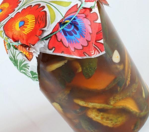 ogórków i zostawiamy na 15 godzin czasem mieszając. Wkładamy do słoików i pasteryzujemy 5 minut ood czasu zawrzenia