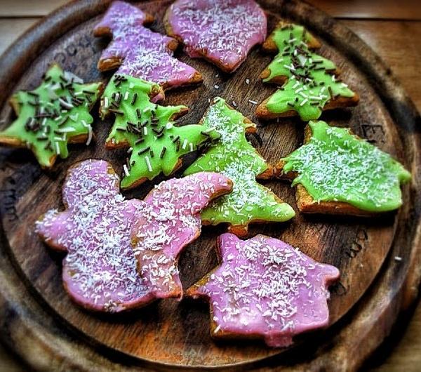 jajka. Zagniatamy ciasto. Ciasto wałkujemy na placki o średnicy 1/2 cm.Wycinamy foremkami pierniczki. Pieczemy w temperaturze 200 stopni do zarumienienia.