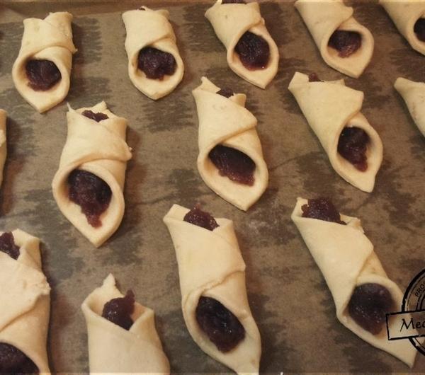 marmoladę, zawijam dwa rogi i piekę ok 15 minut w temp. 170oC.