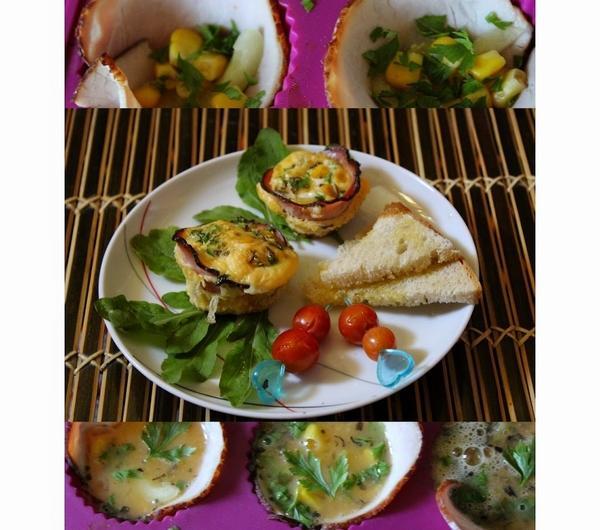 serem żółtym. W efekcie powstają jajeczne muffinki. Doskonale smakują z grzankami z tostera.Porcja na 4 sztukiSkładniki:3