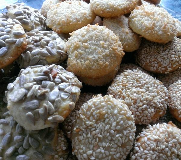 Składniki:3 szklanki mąki pszennej (1 szklanka może być krupczatki)200 g masła (schłodzonego)1 jajko1 żółtko3/4 szklanki cukru pudru1 łyżeczka proszku do pieczenia2 łyżeczki cukru z wanilią2 łyżki kwaśnej śmietany lub jogurtu greckiegododatkowo:1 białko jajka2 łyżki cukruziarno sezamu, słonecznika i wiórki kokosowe