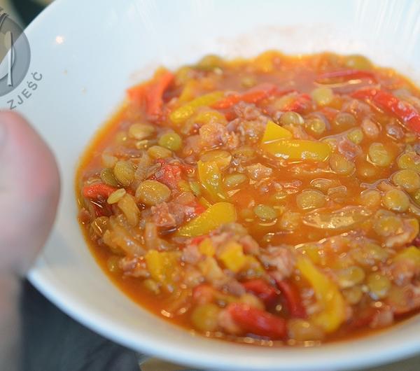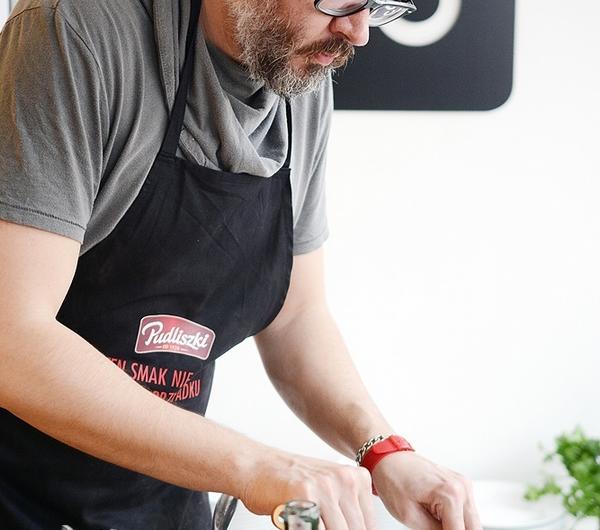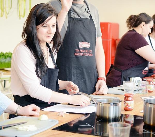Po krótkim wstępie poprowadzonym przez przedstawicielkę marki, zabraliśmy się za gotowanie. Każda potrawa była dokładnie wytłumaczona przez prowadzących, pokazali nam jak ją przygotować, a następnie każda grupa przygotowywała ją na swoich stanowiskach.Przygotowywaliśmy czerwoną zupę z soczewicy czyli zupę z papryki, soczewicy, odrobiny pancetty. Warto wspomnieć, że doprawienie zupy na koniec octem bardzo zmienia jej smak, oczywiście na plus!