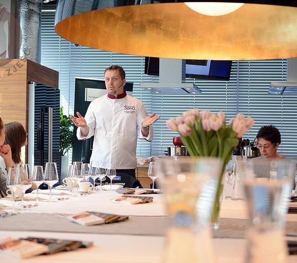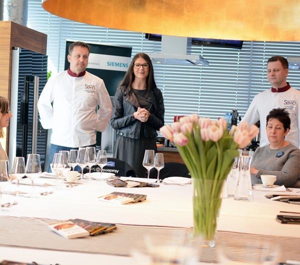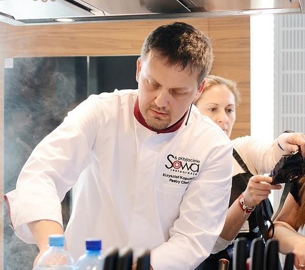 Akademia Smaku Siemens, Warsztaty Desery i czekolada : potęga słodyczy.04 . 04.2014Już kolejny raz miałam okazję uczestniczyć w warsztatach Akademii Smaku Siemens, tym razem poświęconym deserom i czekoladzie. Były to warsztaty, których od dawna nie mogłam się doczekać, ponieważ już w pierwszej informacji prasowej wypatrzyłam je na liście. Spotkanie poprowadził Krzysztof Kopciński, szef cukierni w restauracji Sowa i Przyjaciele. Na spotkaniu nie mogło również zabraknąć Szefa Kuchni owej restauracji czyli Konrada Birka, który zadbał o bardziej wytrawną część menu.Mówi się, że cukiernik, to kucharz, któremu nie wyszło. Po tym co zobaczyłam na tych warsztatach uważam, że to wielka bzdura. Świadczyły o tym cuda jakie wychodziły spod rąk Pana Krzysztofa. Sądzę, że mimo wielkich chęci, nie uda mi się ich powtórzyć w domu... Chociaż z drugiej strony jestem dumna, bo na warsztatach przygotowałam jedną część deseru czyli mus czekoladowy, całkiem samodzielnie :-).Zapraszam do fotorelacji!