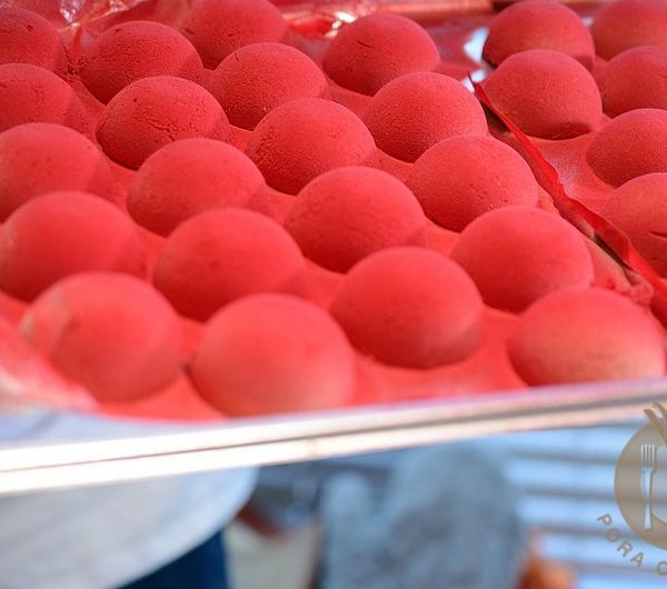 Chałwa w zamszu z malin. Niestety nie poznaliśmy sekretnego przepisu na nią - miała konsystencję bardzo delikatnego musu. Tyle wiem, że składa się ze 100 g ziaren sezamu, 100 g śmietany 36% i 20 g miodu. Jak to jest połączone? Może sama to wykombinuje i odkryję :-).