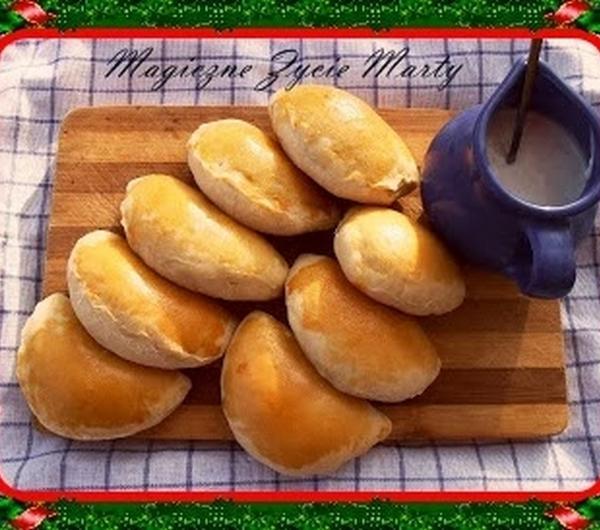 Klasyczne pierogi lubię tylko z kapustą i grzybami , ewentualnie nie pogardzę także tymi ze szpinakiem. Tym razem jednak poszalałam znowu z drożdżowym ciastem i tak oto powstały pyszne pieczone pierogi z pieczarkami. Zapraszam ! Gorąco polecam te pierogi na Wigilię.Składniki :Ciasto :* 1/4 kostki drożdży* szklanka ciepłego mleka* łyżka cukru* pół kg mąki pszennej* łyżka oleju rzepakowego* szczypta soli* jajkoNadzienie :* kg pieczarek* duża cebula* 3 łyżki oleju rzepakowego* sól, pieprz, czerwona słodka papryka mielona* żółtko do posmarowania pierogówPrzygotowanie :Drożdże rozpuszczamy w ciepłym mleku z łyżka cukru. Odstawiamy do wyrośnięcia. W misce mieszamy mąkę z solą, wlewamy rozczyn oraz dodajemy jajko. Wyrabiamy na gładkie ciasto. Tak długo aż będzie odchodziło od dłoni. Delikatnie smarujemy olejem i odstawiamy na pół godziny do wyrośnięcia. Na trzech łyżkach oleju zeszklić pokrojoną w piórka cebulę , dodać poszatkowane pieczarki i usmażyć. Przyprawić do smaku. Ciasto cienko rozwałkować , gdyby się kleiło - podsypać mąką. Wycinać koła od szklanki. Nadziewać zimnym farszem. Zlepić brzegi. Ułożyć na blaszce do wyrośnięcia. Posmarować żółtkiem i piec na z złoty kolor. Podawać z sosem czosnkowym.