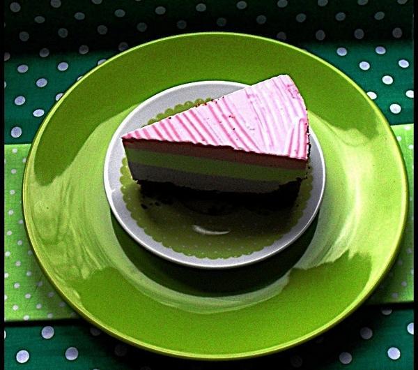 serową, wkładamy do lodówki na 20 minut i tak powtarzamy z drugą i trzecią masą. Na wierzchu robimy wzorek widelcem. Odstawiamy sernik na godzinę do lodówki.