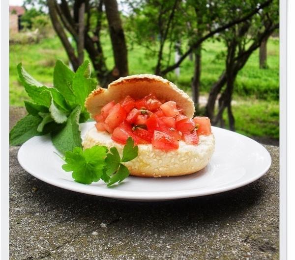Przygotowanie :Bułeczkę przekroić na pół, położyć na grillu bądź na patelni grillowej. Zrumienić z obu stron.