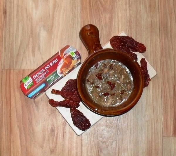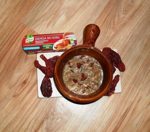 Sos do mięsa musi być i już. Szczególnie ten gęsty i bardzo aromatyczny. U mnie zawsze jest podawany czy do ziemniaków czy ryżu, kaszy. Tym razem zrobiłam sos z dodatkiem esencji do sosu pieczeniowego ciemnego Knorr. To takie szybkie rozwiązanie, gdy mamy mniej czasu na przygotowanie i długie gotowanie domowego sosu. Od czasu do czasu możemy sięgać po takie ułatwienia.Składniki :* 300g karkówki bądź innego mięsa wieprzowego* cebula* 2 ząbki czosnku* łyżka smalcu* szklanka zimnej wody* jedna esencja do sosu pieczeniowego ciemnego KnorrPrzygotowanie :Mięso umyć, osuszyć i pokroić w kostkę. Cebulę posiekać w piórka, czosnek w plasterki. Rozgrzać smalec. Zeszklić warzywa. Dodać mięso, przesmażyć, zalać wodą i zagotować. Gotować około 40 minut, dodać esencję do sosu pieczeniowego. Zagotować. Opcjonalnie posypać rozmarynem i drobno pokrojonymi suszonymi pomidorami. Podawać z ziemniakami, ryżem bądź kaszą. Sos idealnie nadaje się do placków ziemniaczanych.