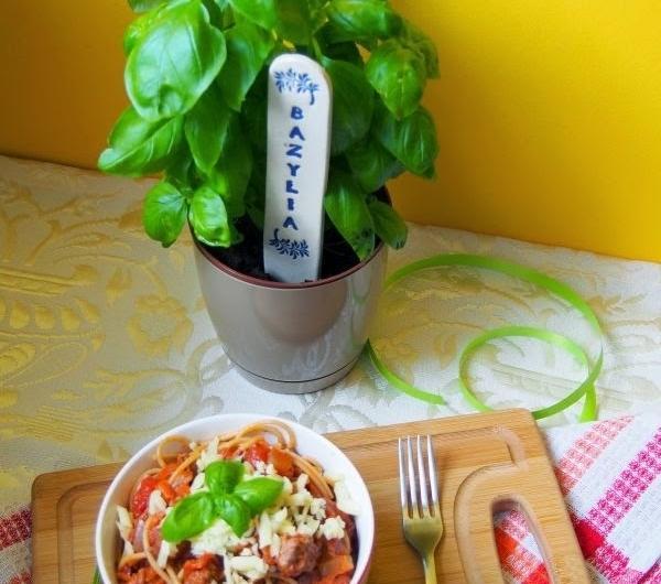 A poniżej możecie zobaczyć jak cudnie prezentują się tabliczki, o których jakiś czas temu pisałam TUTAJ . :-) Krzaczek bazylii nabrał nowego wyrazu. To prawdziwa ozdoba kuchennego okna!
