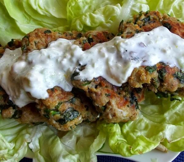 Dziś będzie troszkę coś a`la dietetycznie. Pyszne wieprzowe , grillowane burgery z mnóstwem ziół i pysznym sosem tzatziki. Są pyszne - jeśli ktoś ma ochotę to serdecznie zapraszam :)- 60dkg mięsa mielonego-wieprzowego- 1 jajko- czerstwa bułka- po garści świeżej : pietruszki, lubczyku i selera naciowego (liści)- sól, pieprz- 2 ząbki czosnku- ew. kasza manna do zagęszczeniaSos Tzatziki- 1 duży ogórek szklarniowy- 1,5 łyżki jogurtu greckiego- skórka otarta z połowy dużej cytryny- trochę oliwy ( tak z pół łyżeczki)- 1 ząbek czosnkuZioła siekamy. Dodajemy do mięsa mielonego. Dokładamy jajko, namoczoną i odsączoną bułkę, sól, pieprz i przeciśnięty przez praskę czosnek. Wszystko mieszamy dokładnie do uzyskania gładkiej masy. Formujemy kule - na średnicę dłoni i grillujemy do miękkości.W tym czasie przyrządzamy sos. Ogórka obieramy i trzemy na tarce o dużych oczkach. Odsączamy dokładnie miąższ z całego soku. Dodajemy do jogurtu. Dosypujemy skórkę z cytryny , przeciśnięty przez praskę czosnek - mieszamy, Na koniec dolewamy oliwę z oliwek- znów mieszamy.Sos nakładamy na burgery.