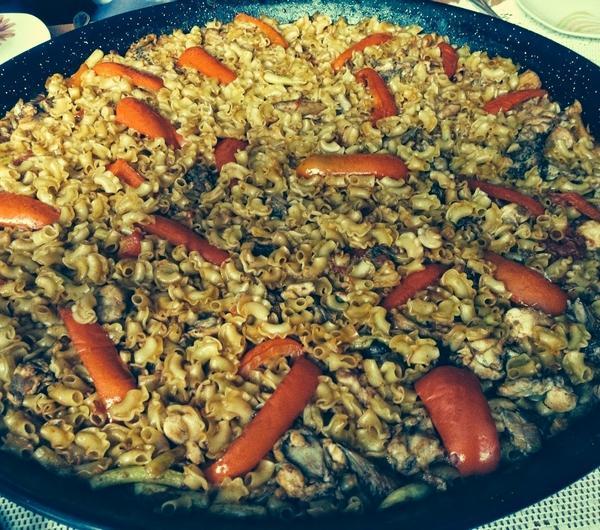 A oto jak powstało Fideuà . Wynalazek był częścią przypadku i zażegnania awantury głodnych żeglarzy .Gabriel Rodríguez Pastor, " kioskarz z kiosku Gabrielo Grau de Gandia ”, był kucharzem na łodzi, Juana Bautisty Pascuala, znanego jako „ Zábalo” Według rodziny „ Gabriela Rodrígueza Pastora ” Kapitan bardzo lubił ryż i dla innych żeglarzy, prawie nigdy nie starczało dania normalnie przygotowanego. Próbując znaleźć rozwiązanie problemu, Gabriel Rodriguez wymyślił, aby zamieni ć ry ż, na makaron, aby tym samym danie było mniej apetyczne dla kapitana i reszta załogi mogla się najeść .Wynalazek spodobał się i danie zostało ¨gwiazda¨ restauracji w porcie w Gandii . Ustanawiając się jako niezbędne i charakterystyczne dla regionu oraz miasta. Do dzi ś odbywa się tam doroczny konkurs związany z ta potrawa.