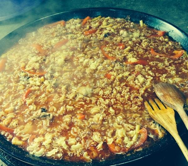 Na koniec przykrywamy danie np. dużą pieluch ą i pozostawiamy bez ognia kilka minut aż makaron ¨dojdzie¨.Podajemy z sosem AiOli . Ja w tym przypadku zrobiłem go na bazie majonezu, bez jajek, użyłem mleka jak w przepisie na Laktonez zamieszczonym prze zemnie .