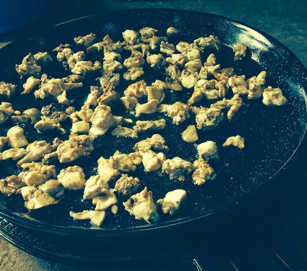 Zaczynamy od przesmażenia królika . Kiedy mięso będzie ¨zamkni ę te¨z każdej strony, zdejmujemy z patelni i odstawiamy na bok.