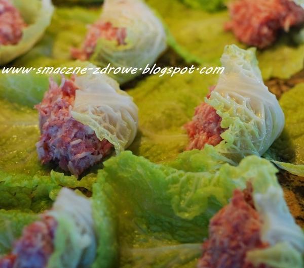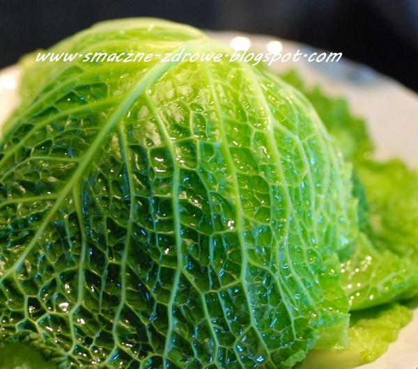 Kapustę obrać , tzn. oderwać delikatnie całe liście. Te lepsze umyć, ściąć delikatnie zdrewniałe części od strony głęba i obgotować kilka minut we wrzątku. Przy