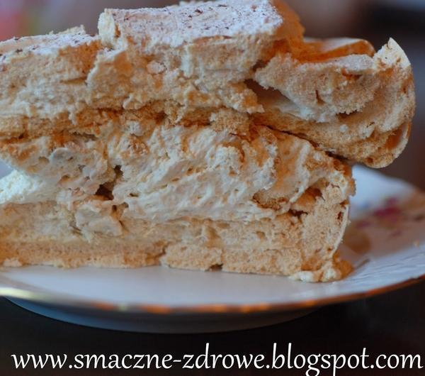 torta bezowego. Kiedyś kupowaliśmy taki oryginalny od Sowy, był pyszny ale baaardzo słodki. Od kilku lat przygotowuję taki torcik sama. Jest jeszcze smaczniejszy i przede wszystkim mniej słodki.Co prawda ostatnimi czasy uderzyliśmy w jego delikatniejszą wersję -