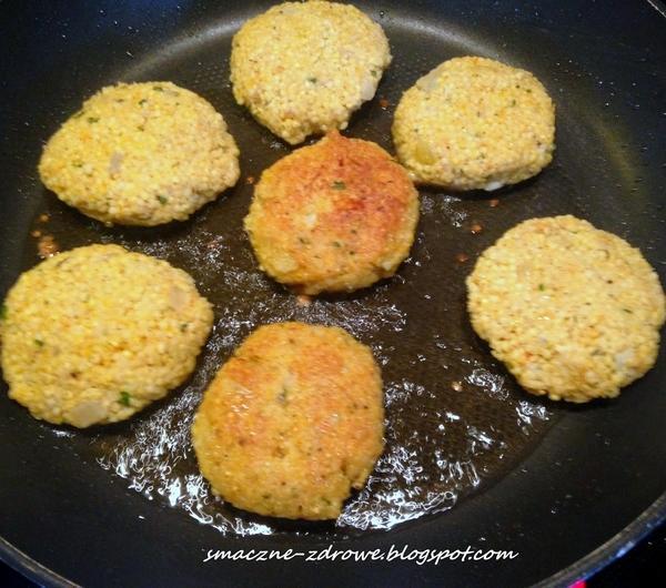 Z uzyskanej masy formujemy małe kotlety i smażymy na rozgrzanym