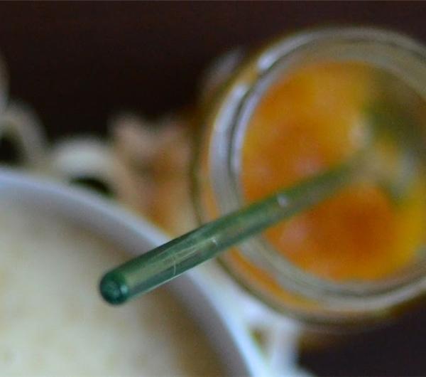 miód. Zagotować i wyłączyć ogień. Na środku talerza rozłożyć ciepły