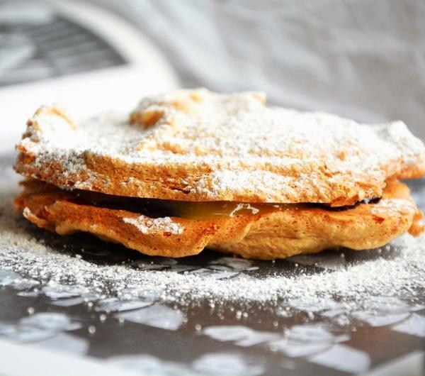 Składniki na trzy, podwójne ciastka, 6 porcji:bezy6 białek (około 240 g), w temperaturze pokojowej200 g drobnego cukru1 łyżka octu winnego1 płaska łyżka skrobi ziemniaczanejszczypta soli6 kostek czekolady; u mnie mleczna, bo chłopaki nie lubią gorzkiej; gdybym nie musiała się dzielić, byłaby gorzka ;)lemon curd2 żółtka40 g masła3 czubate łyżki cukru pudrusok i skórka z 1 cytrynydodatkowo3 czubate łyżki czarnych porzeczek z cukrem (własne przetwory) lub dżemu (teraz super dżem w Lidlu z Łowicza)