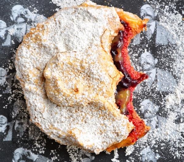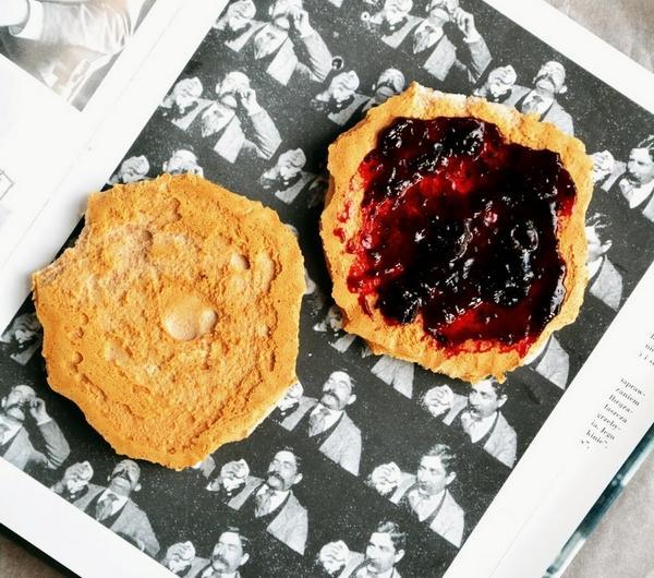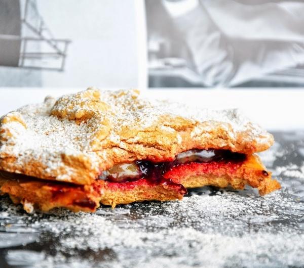 Na jednym rozłożyć łyżkę sosu, na drugim łyżkę porzeczek.