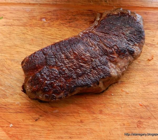 steki po ok 3 min z każdej strony, tak aby były średnio wysmażone. Przełożyć na deskę i dać im "odpocząć" przez 2 - 3 minuty, następnie pokroić w cienkie plasterki.Dalej można postępować na dwa sposoby:1. (wygodny , kiedy nie podajemy zupy zaraz po zrobieniu) Naszykować