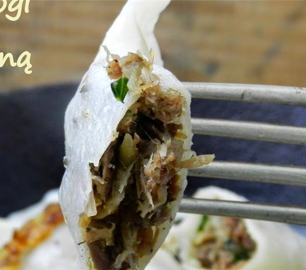mięsnych resztek. Jeżeli jednak zdarzy się, że zostanie trochę pieczonych resztek, warto takie pierogi zrobić. Dodatek gęsiego