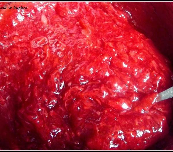 Truskawki wkładamy do rondla, dodajemy 1/2 szklanki